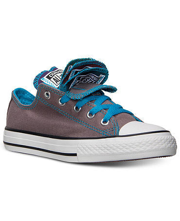 Featuring the classic details of the iconic Chuck Taylor All Stars, like the All-American canvas upper with laces for an ideal fit and vulcanized rubber sole for durability, these updated favorites pack a large number of style points with the multi tongue design. The outer tongue can be worn flipped up or down for an instant shoe makeover, offering versatility that many shoes just don't have. Upper: canvas; Outsole: rubber Imported Converse girls' casual sneakers Midsole: Rubber Outsole: Vulcanized rubber Style no. 340239FP Kids' athletic footwear from Finish Line