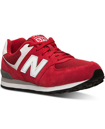 The New Balance 574 Casual Running Sneakers are a smart, updated spin on an awesomely classic style that your tot will love. Made from a combination of mesh and synthetic materials, this version of the 574 brings a slightly more refined feel to this old-school favorite. Synthetic upper; Rubber sole Imported New Balance big boys' casual sneakers Mesh and synthetic upper Style no. KL5741V Kids' athletic footwear from Finish Line